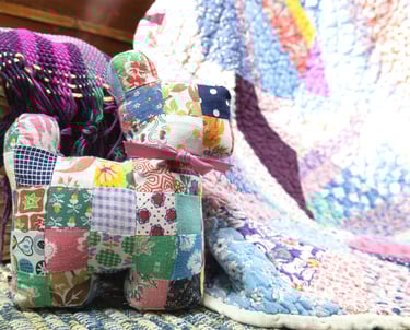 Starting with quilting and expanded through embroidery, cross-stitch, and yarn-based textiles, I’m especially drawn to texture, imperfect beauty, and the stories tucked into well-loved fabric. I get a little giddy over an heirloom piece with history, but I’m just as excited about finding new ways to turn modern materials into something meaningful.